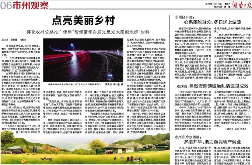金旭科技點亮美麗鄉村--懷化農村公路推廣使用“智能蓄能自發光反光太陽能地標”材料每當夜幕降臨后,在懷化的溆浦、靖州、沅陵等縣的部分農村公路上,道路兩旁的“地燈”閃閃發光,點亮了美麗鄉村。